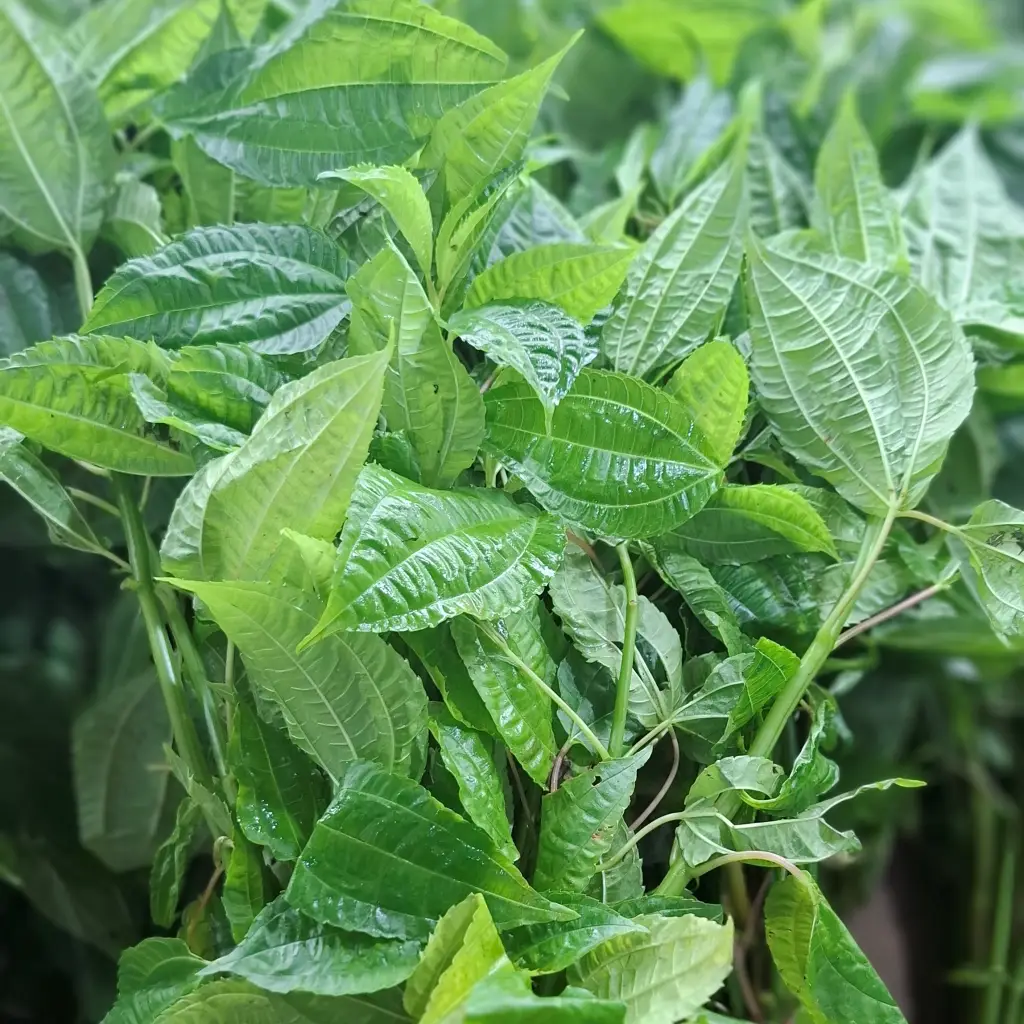 Aroma Khas Segar: Daun Pohpohan yang segar punya aroma khas yang wangi dan menyegarkan, bukan bau langu atau busuk.
